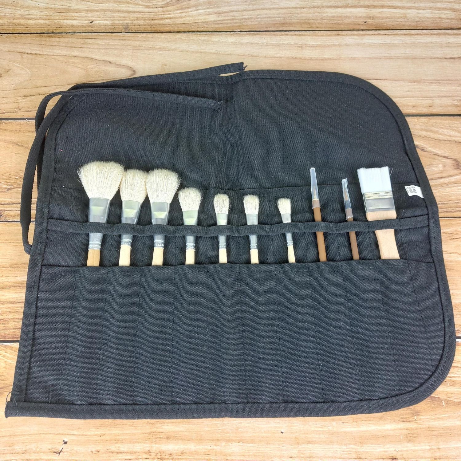 Roll-Up Polyester Storage Case: Holds up to 12 brushes, keeping them safe, secure, and neatly arranged.