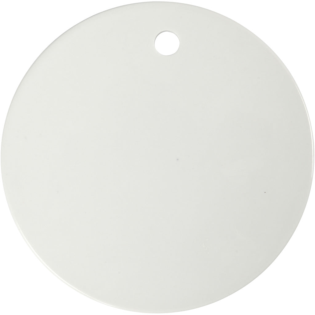 Add a touch of elegance to your decor with this Round Ceramic Plate. Featuring a large round hole for easy mounting with a suspension cord, this plate is both functional and stylish. The front side is beautifully glazed, giving it a smooth and polished finish that enhances its aesthetic appeal.