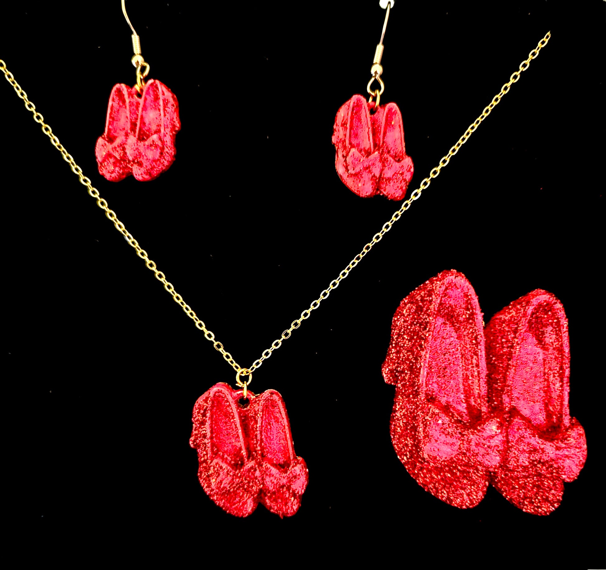 This one-of-a-kind Ruby Slippers jewellery silicone mould is from our brand new Wizard of Oz collection. It includes two earring impressions (2cm each), a 3cm pendant impression, and a 5cm brooch impression. The earring and pendant impressions also feature handy loops for easy attachment.