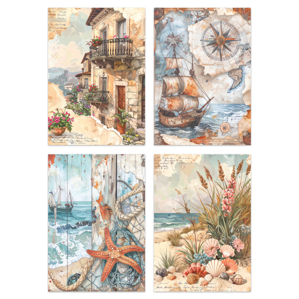 Discover the charm of vintage style combined with bold creativity in the Vintagely Valiant A2 Printed Rice Papers. This carefully selected set features four distinct designs on premium rice paper, perfect for decoupage, journaling, mixed media, and other crafts.
