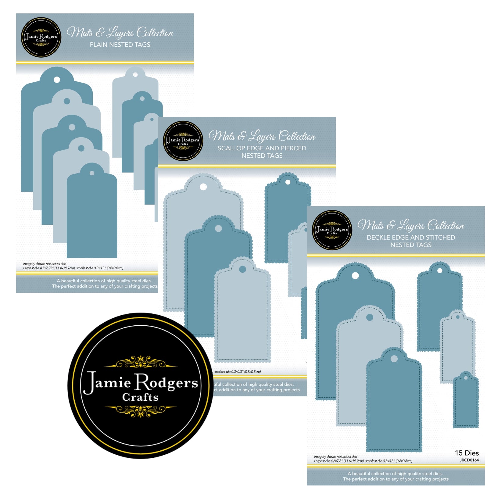 This premium bundle from Jamie Rodgers Crafts includes three coordinating nested tag die sets from the Mats & Layers Collection, each offering its own distinctive finish. Whether you're creating festive gift tags, card toppers, or scrapbook embellishments, this die bundle delivers timeless style and maximum flexibility.