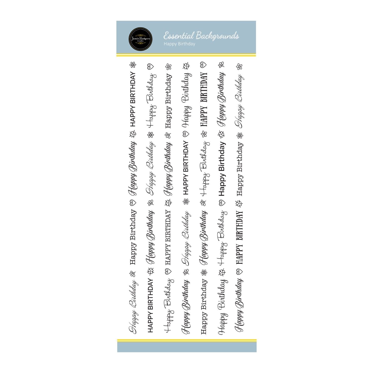 Create stylish and modern birthday-themed backgrounds with the Jamie Rodgers Crafts Happy Birthday Lines DL Stamp. Featuring a repeating ‘Happy Birthday’ text design, this versatile stamp is perfect for adding a celebratory touch to cards, gift tags, and scrapbook pages.