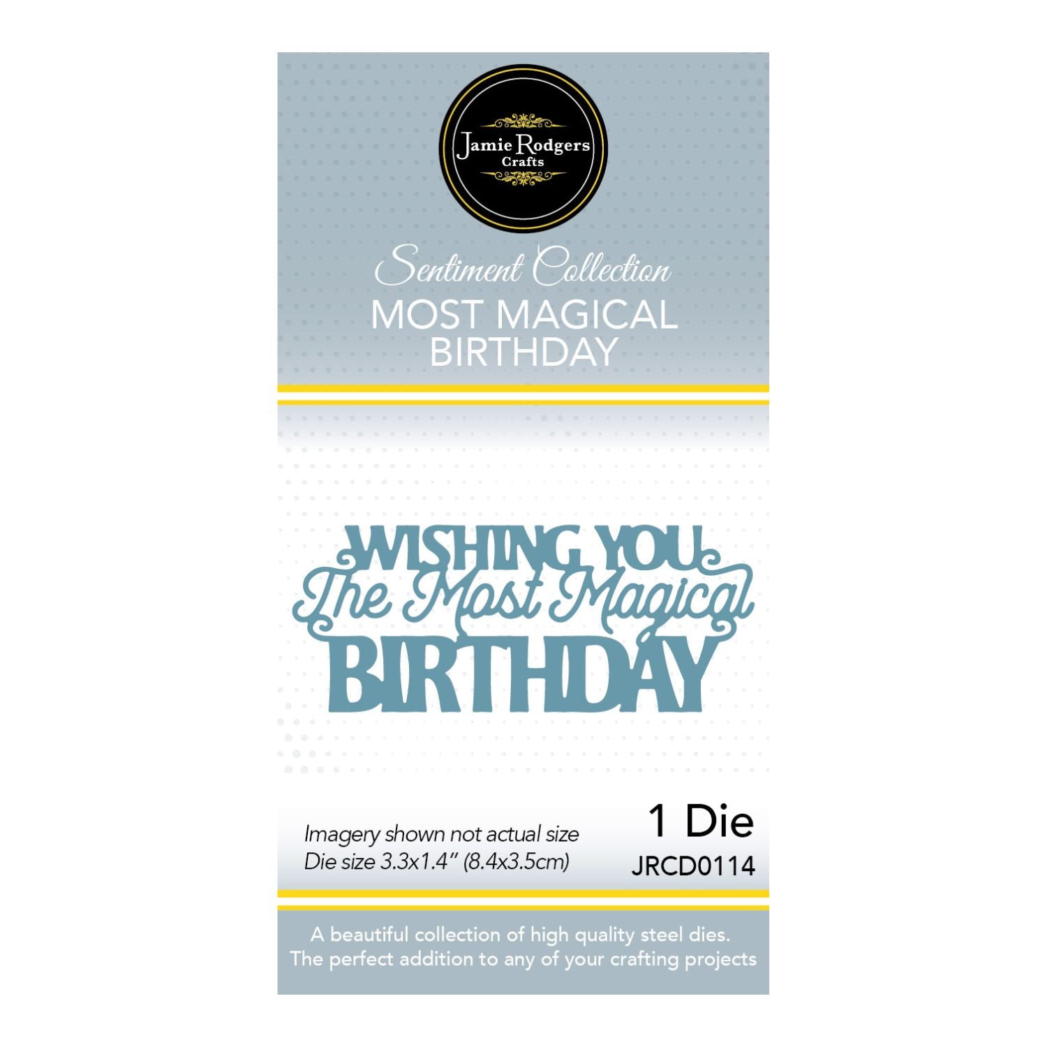 The Wishing You The Most Magical Birthday Die from Jamie Rodgers Crafts is a charming addition to the Sentiment Collection. This premium quality craft die helps you create beautiful, magical sentiments for your cards, scrapbooks, and other paper crafts.