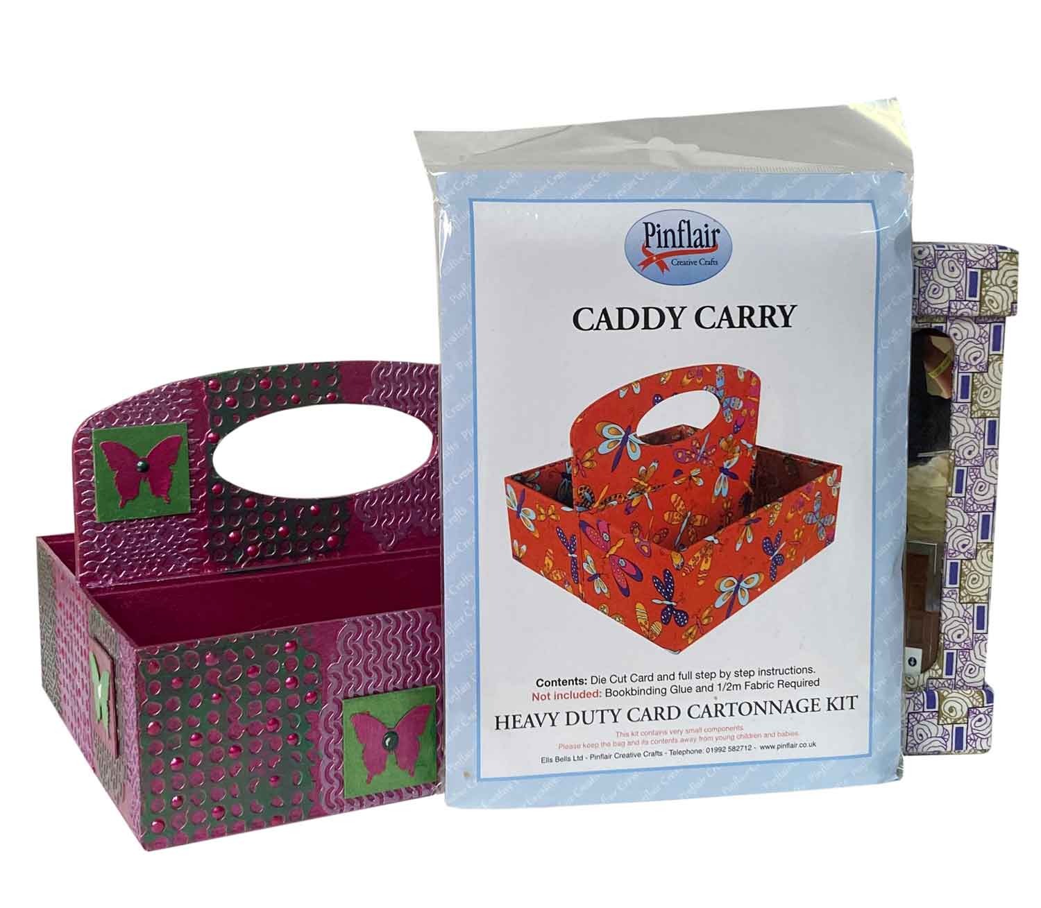 Kit makes two Cartonnage Caddy Carrys – ideal for organising and carrying craft materials or other essentials.