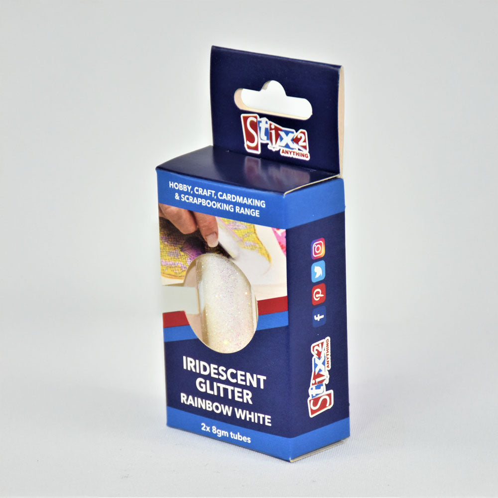 Bring a shimmering touch to your cards and craft creations with this ultra-fine glitter. Featuring an iridescent rainbow sheen on a crisp white base, it’s perfect for enhancing card making, scrapbooking, and wedding stationery projects.