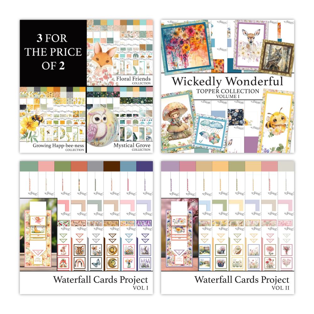 The Buy the Show offer includes: The Crafty Witches Trio of Magical Digital Collections, The Crafty Witches Waterfall Card Collection Vol I, The Crafty Witches Waterfall Card Collection Vol II & The Crafty Witches Wickedly Wonderful Toppers SVGs & PDF Templates Digital Collection