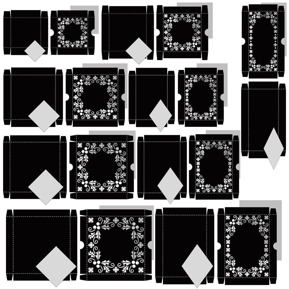 This incredible set of festive boxes includes three different style designs applied to nine different sizes (4" x 4", 5" x 5", 6" x 6", 7" x 7", 8" x 8", 6" x 4", 5" x 7" A5 & DL) all one inch in depth. Styles include full regular boxes, boxes with apertures and boxes with ornate inclusions and toppers - perfect for sending your dimensional makes with style and for gifting. All boxes with apertures and inclusions include inner lid 'coverings' so you cannot view the items inside. So versatile. 81 x SVG files included, 27 box designs included.