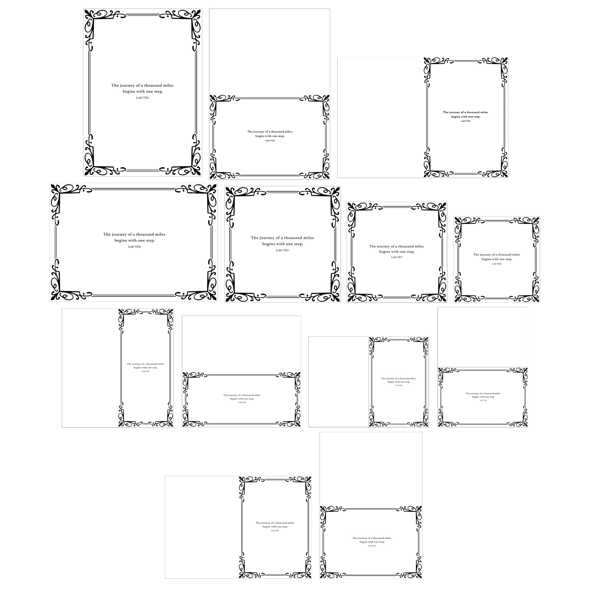 Sizes include DL, 6x6, 7x7, 8x8, 6x4, 5x7, A5 & A4 (in portrait and landscape orientation).