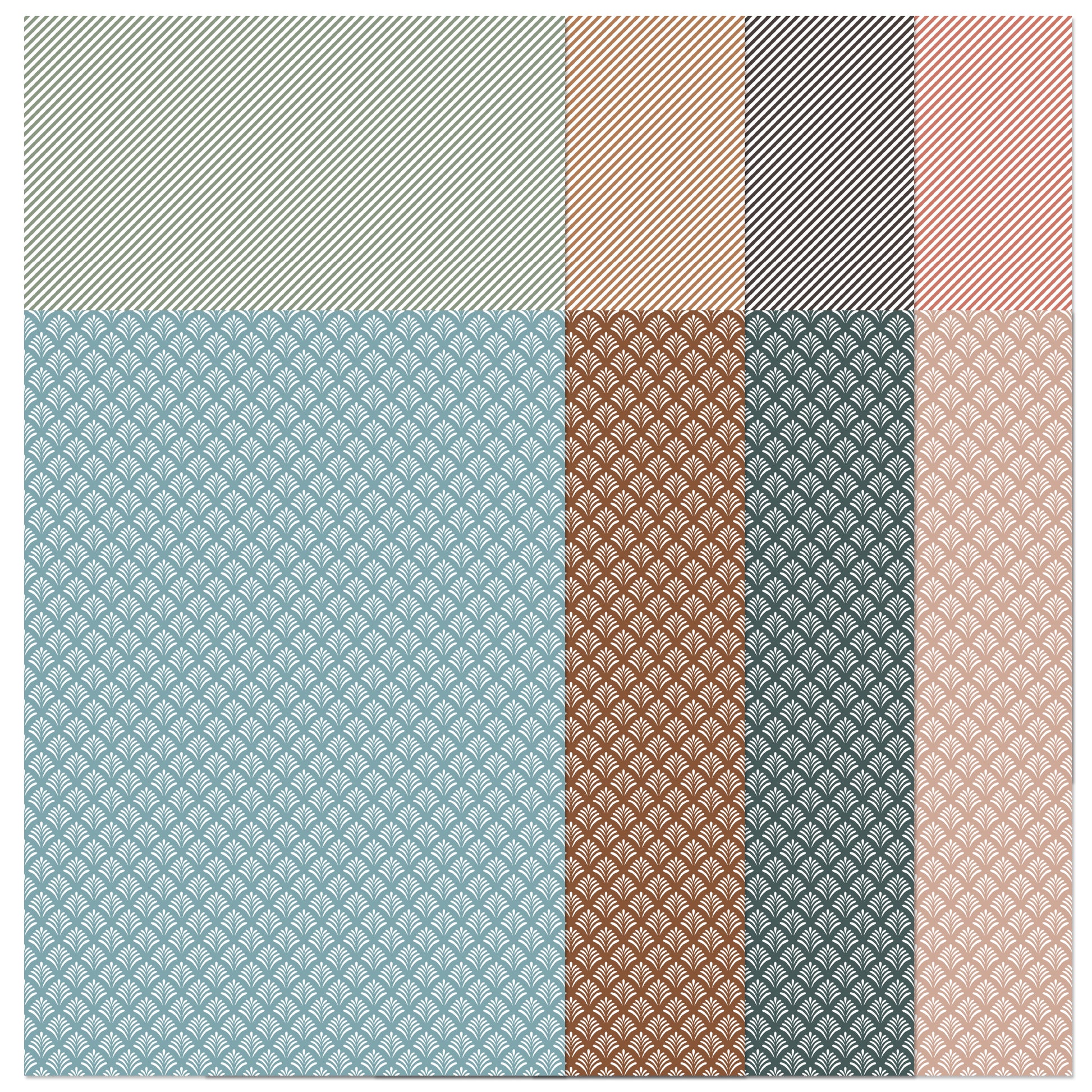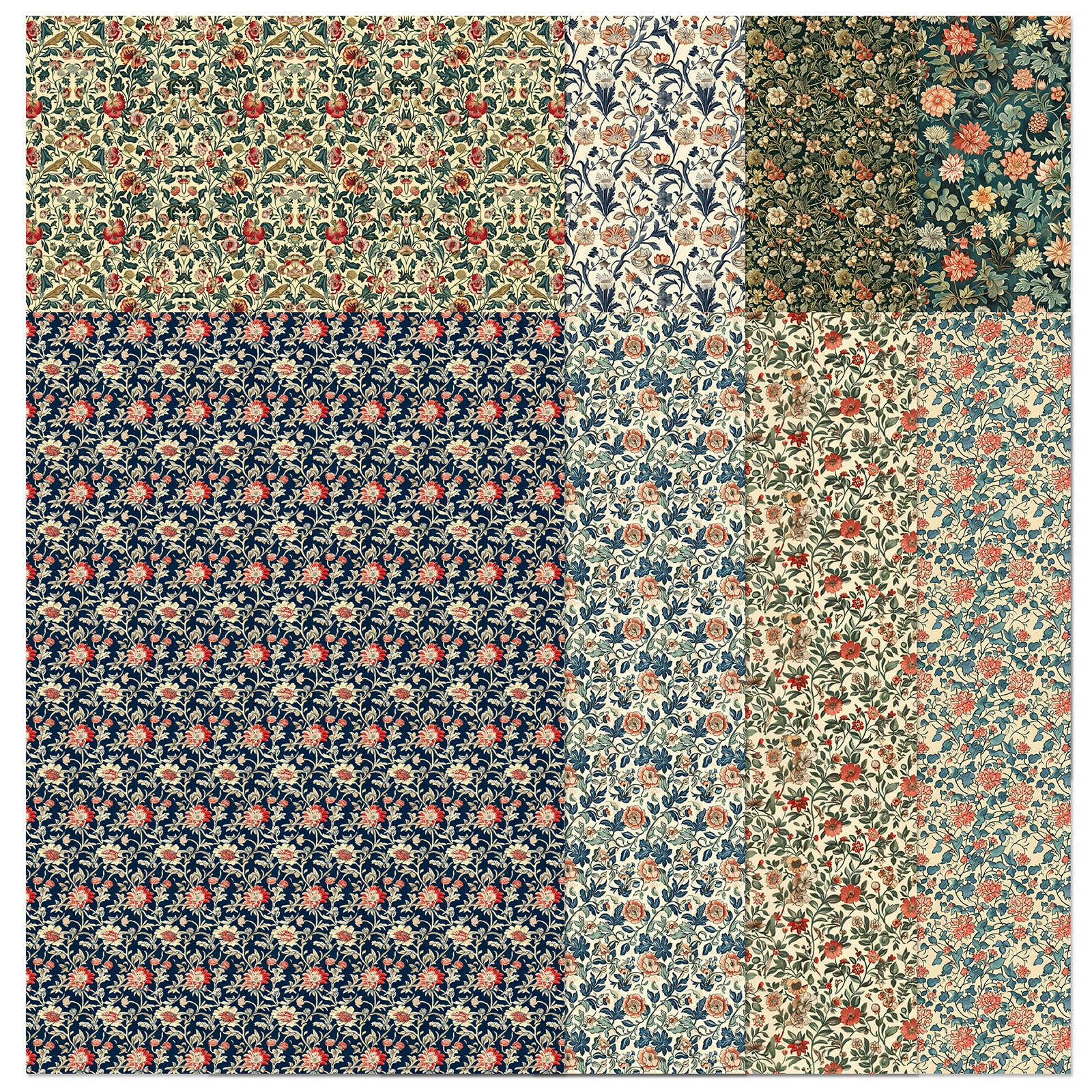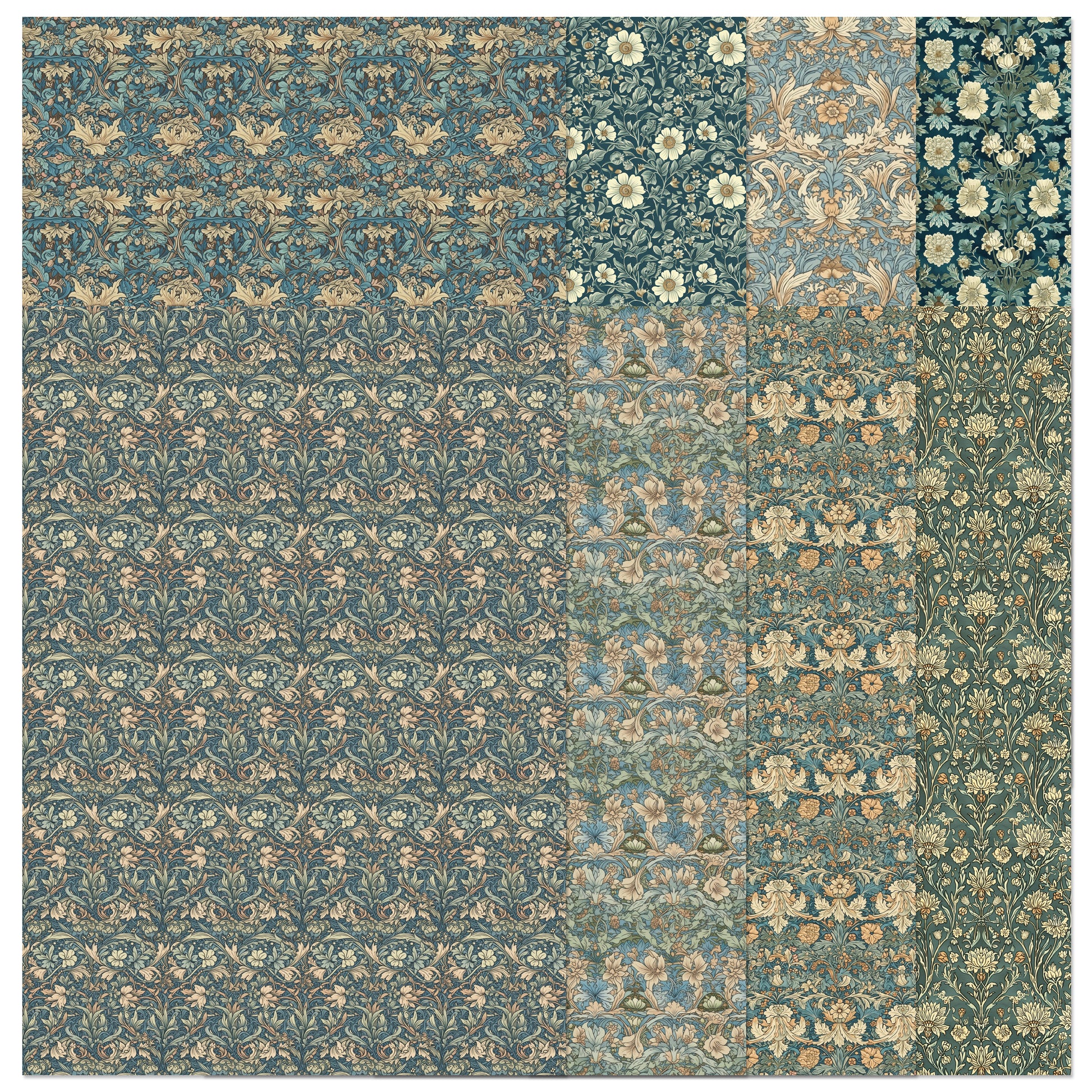 In the style of William Morris this handy collection of background A4 floral designs is coordinated in shades of greens, creams & oranges, this is a staple not to miss.
