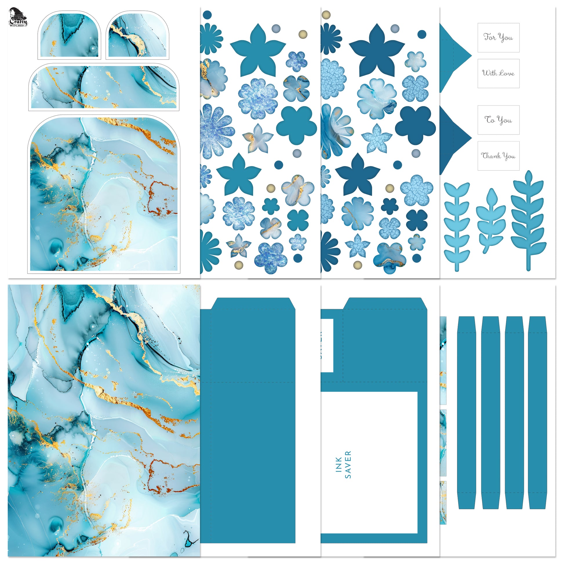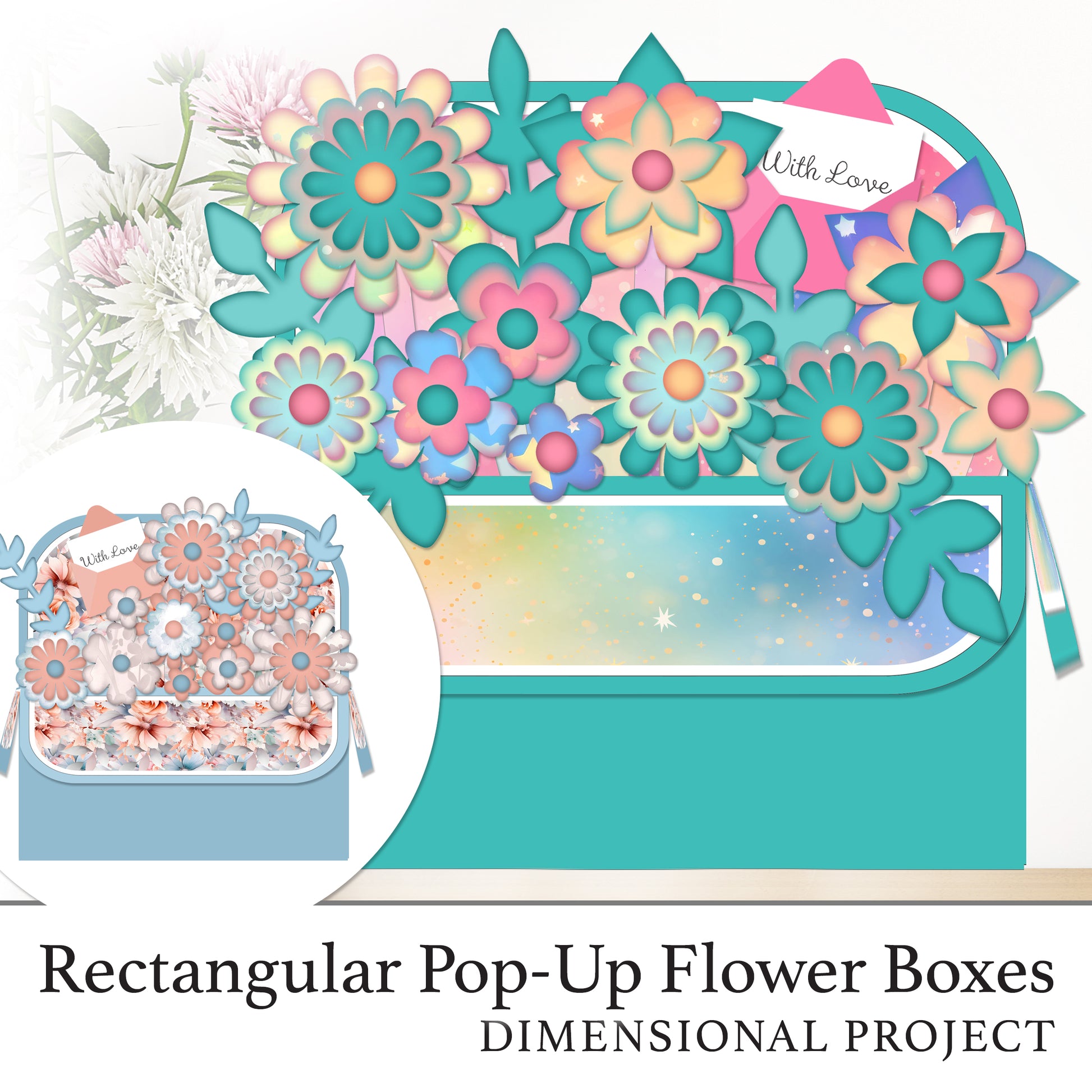 Includes all you need to make 4 x design variants of a stunning rectangular 'pop-up' box! Create as indicated in the instructions, or put your own spin on it. Final box sized at 185mm x 175mm x 80mm. You are allowed to print, pack & sell the printed sheets, pack them into kits & sell. We have included front covers to make the packed kits look professional.