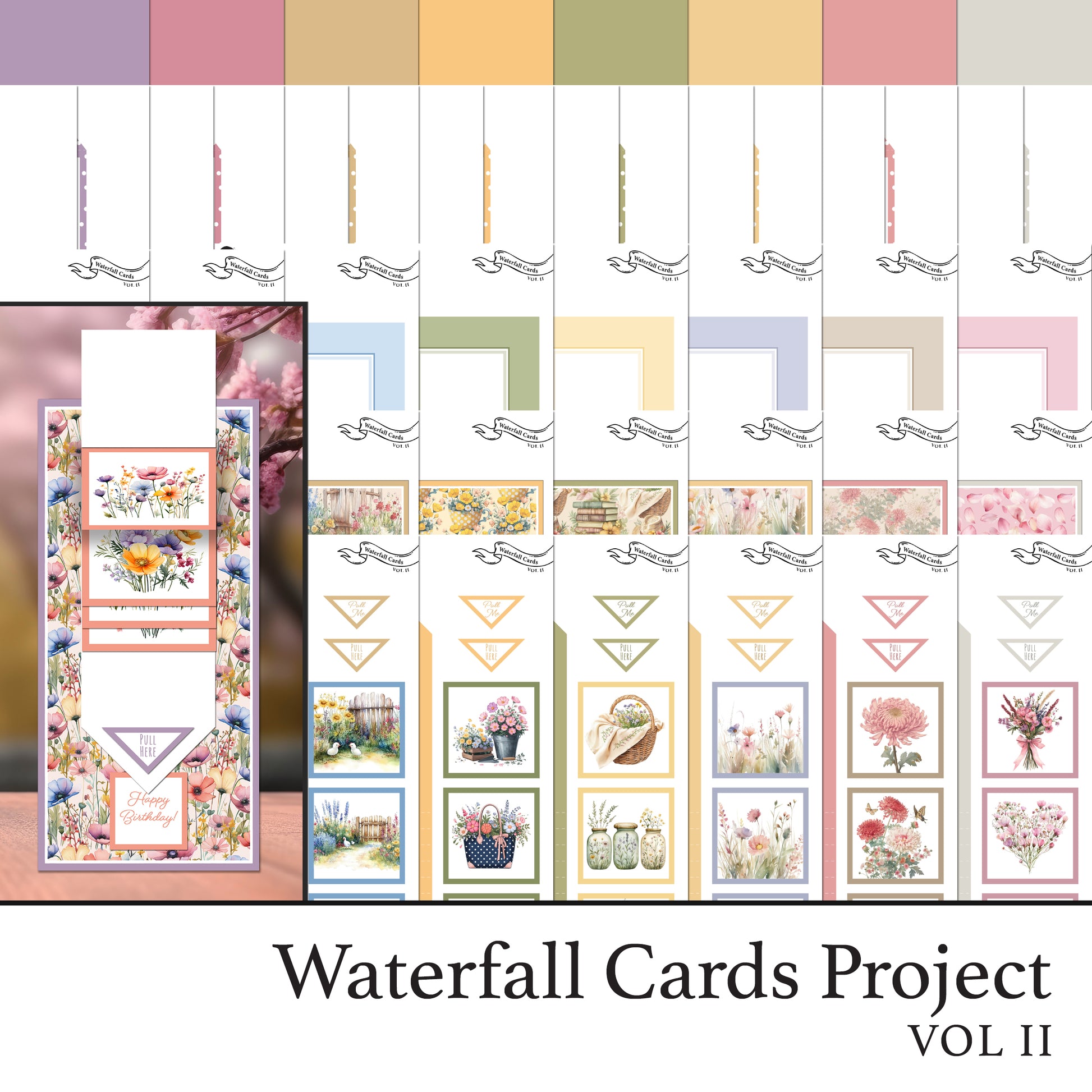 This collection takes the mystery out of making waterfall cards. All the measurements are done for you. 8 designs of DL waterfall cards.
