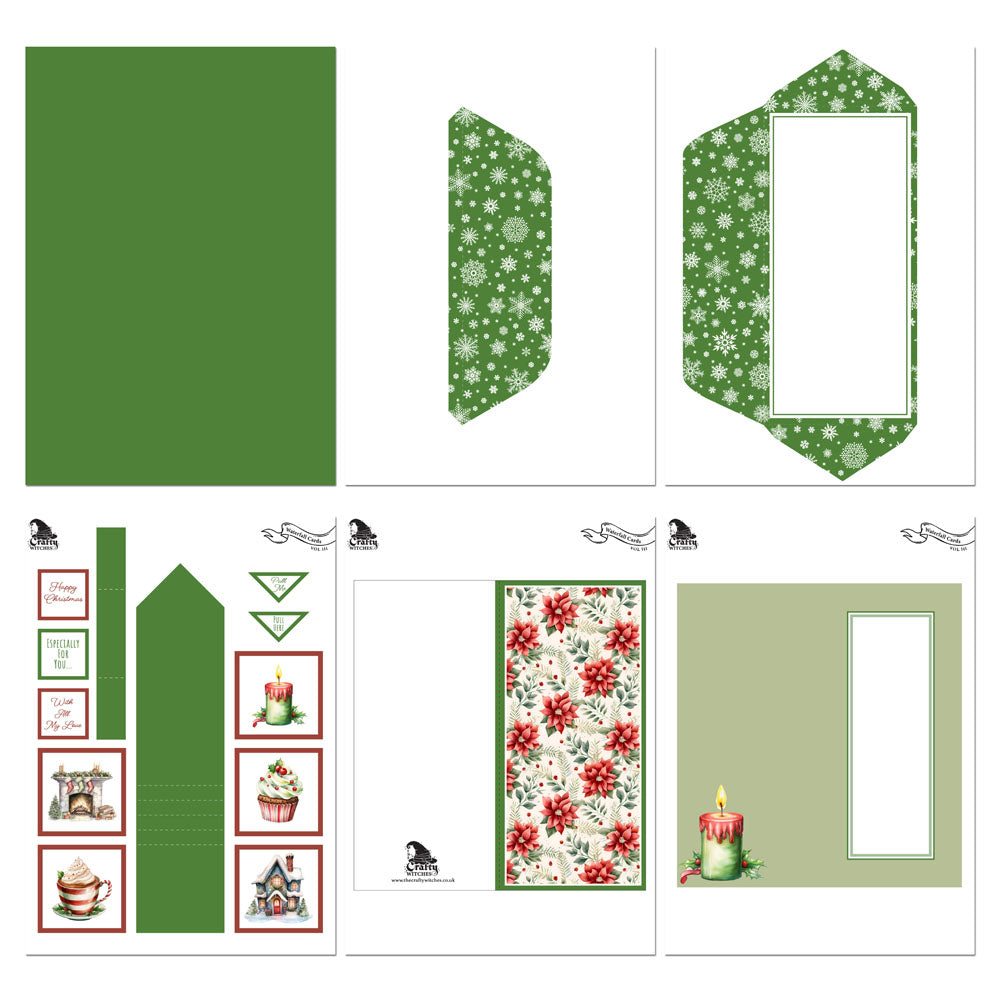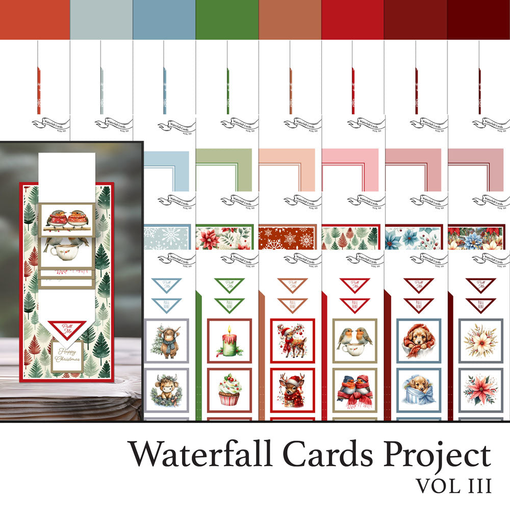 This collection takes the mystery out of making waterfall cards. All the measurements are done for you. 8 Christmas designs of DL waterfall cards.